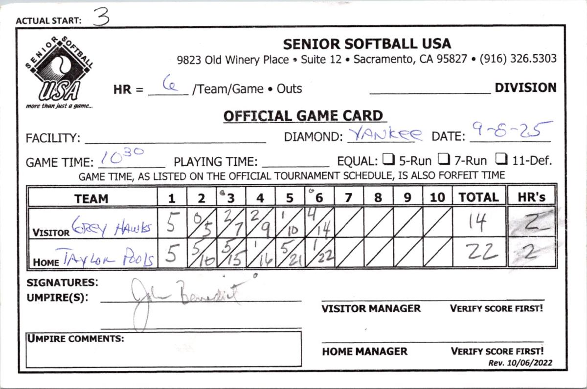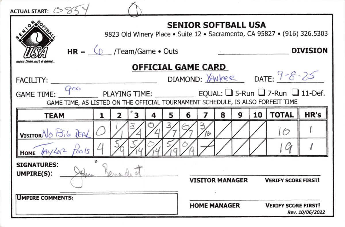 H – Taylor Made Pools | 3 | 1 | .750 | 84 | 71 |