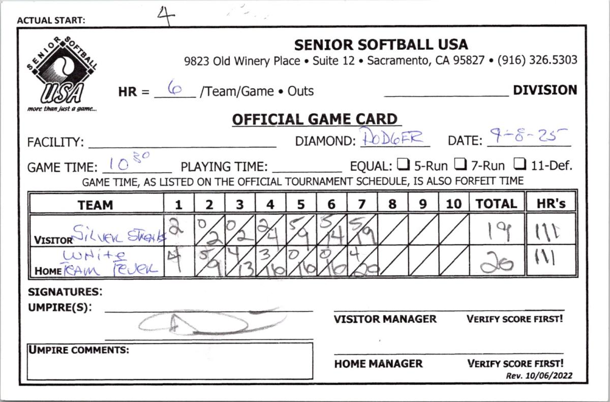 F – Silver Streaks | 2 | 4 | .333 | 99 | 124 |