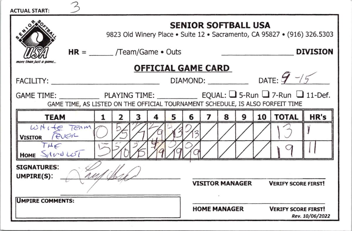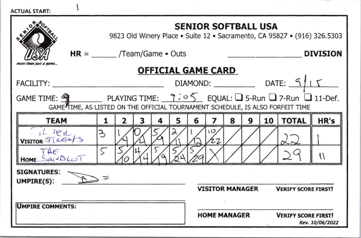 E – The Sandlot | 4 | 2 | .667 | 127 | 123 |