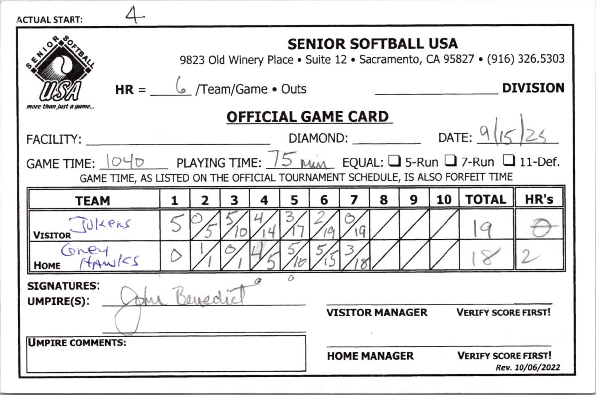 B – Jokers | 2 | 4 | .333 | 116 | 119 |
